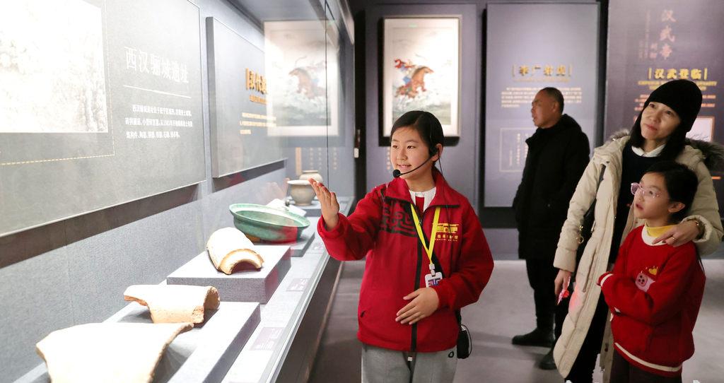 1月31日,秦皇島博物館“小講解員”為市民進行講解。