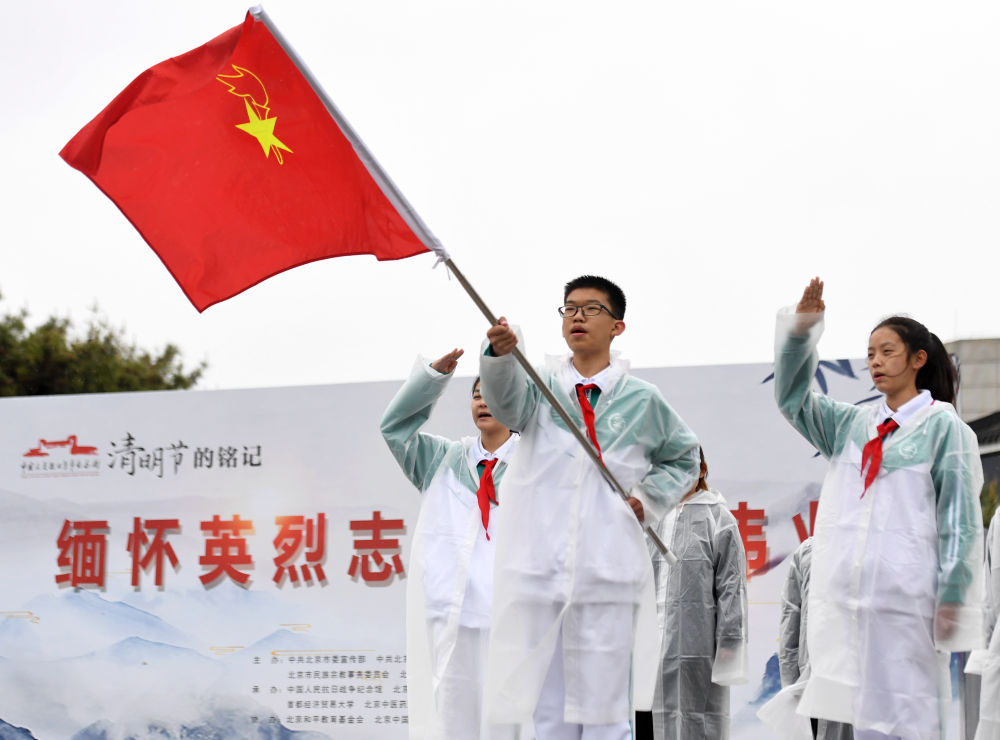 2023年4月4日,“清明節的銘記——緬懷英烈志 創造新偉業”主題教育系列活動啟動儀式在中國人民抗日戰爭紀念館舉行。這是少先隊員代表在啟動儀式上高唱《我們是共產主義接班人》。