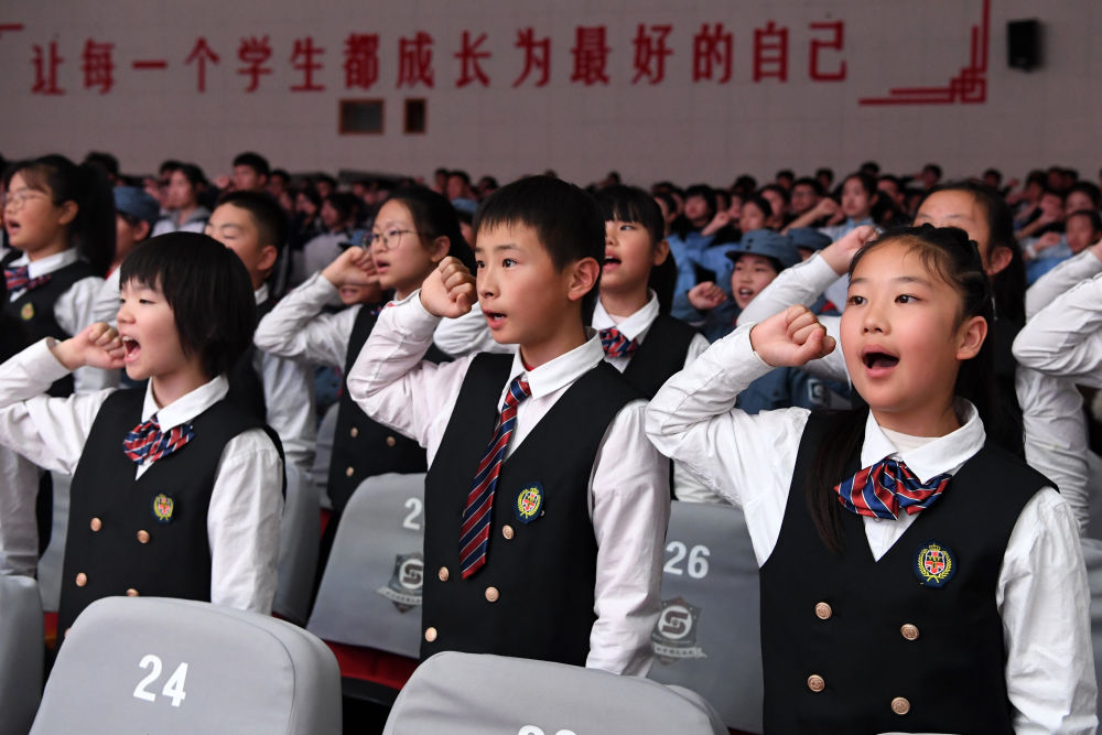 2024年11月13日,在“中流砥柱——中國共產黨抗戰文物展校園巡展”活動上,北京市第四中學順義分校學生們共同宣誓,傳承紅色基因,接受愛國教育。該巡展把中國人民抗日戰爭紀念館的館藏資源搬進北京中小學校園,打造流動博物館和紅色思政課堂。