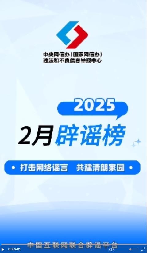 打擊網絡謠言 共建清朗家園 中國互聯網聯合辟謠平臺2025年2月辟謠榜