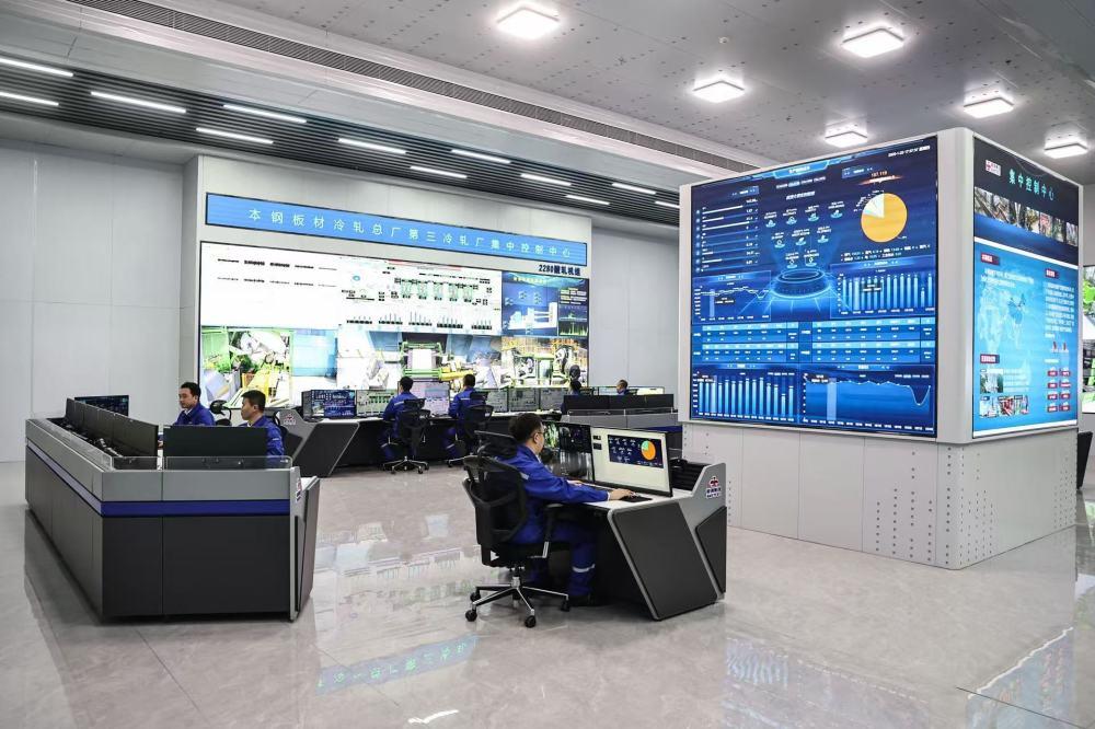 △工作人員在鞍鋼集團所屬的本鋼板材冷軋總廠第三冷軋廠集控中心監控設備運行情況。