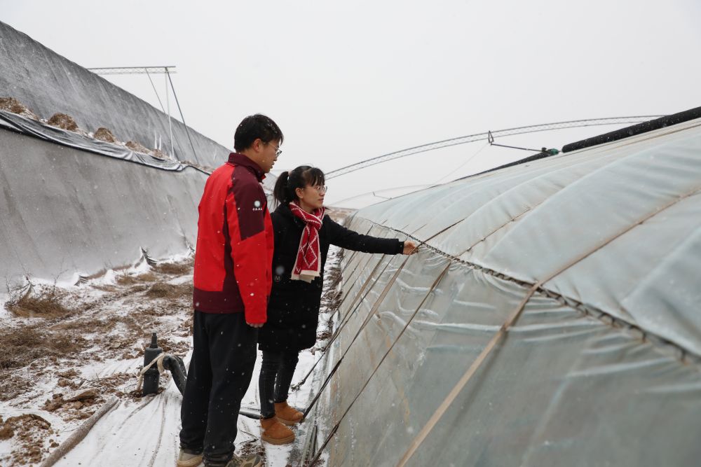 在邢臺市南和區,當地農技人員指導種植戶開展棚室保溫加固工作。新華社發(耿昭 攝)
