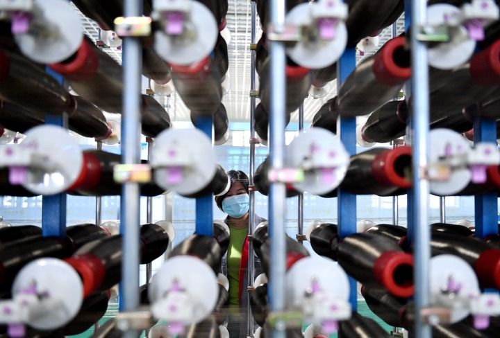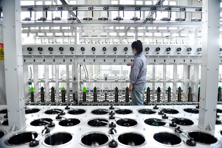 6月24日,圍場縣一家玄武巖纖維生產企業的工人在生產車間忙碌。新華社記者 王曉 攝